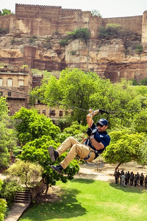 Experience adrenaline-filled zip lining near Mehrangarh Fort with stunning aerial views.